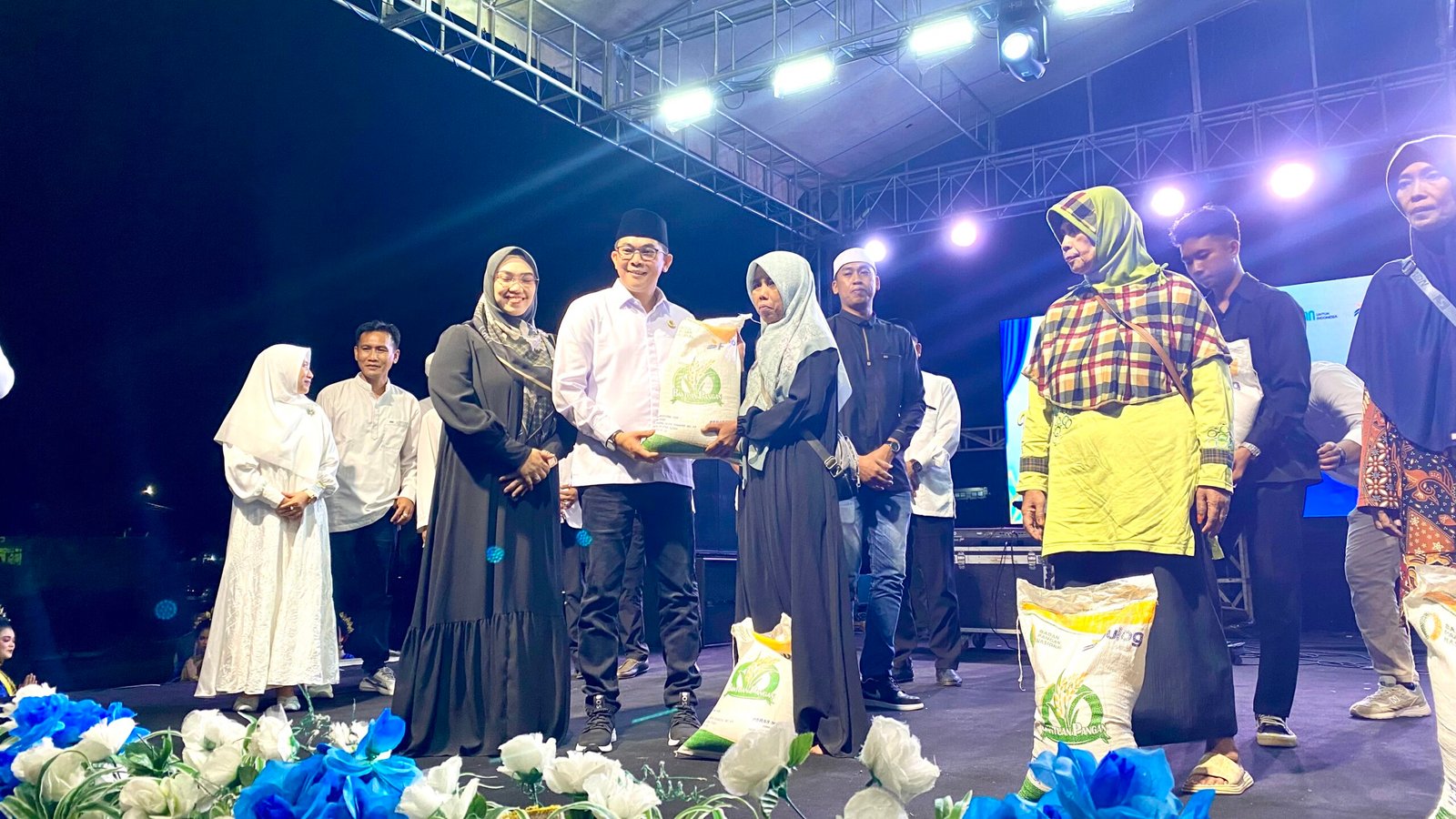 Usai membuka kegiatan , bupati didampingi Ketua TP PKK Andi Irmayani Rudi Latif, dan Forkopimda menyerahkan secara simbolis bantuan pangan beras kepada penerima manfaat.
