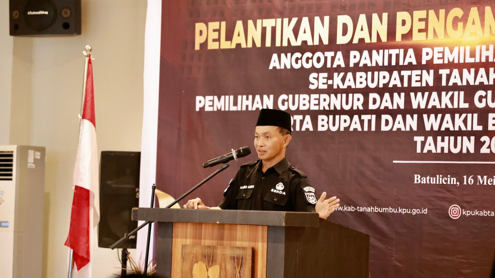 Hal itu ditegaskan Sekda pada Pelantikan dan Pengambilan Sumpah Janji Anggota Panitia Pemilihan Kecamatan (PPK) untuk Pemilihan Gubernur dan Wakil Gubernur Kalimantan Selatan, Bupati dan Wakil Bupati Tanah Bumbu Tahun 2024, di di Hotel Ebony, Kamis (16/5/24).
