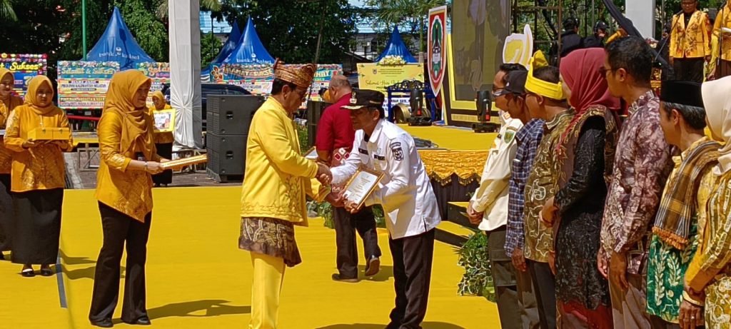 Adapun penghargaan di serahkan Gubernur Kalsel Sahbirin Noor dan Kasatpol PP dan Damkar Kalsel Zakly Asswan. Dan di terima langsung Kepala Desa Pandan Sari, Rabu (14/8/2024) saat peringatan HUT Ke-74 Kalsel di Siring Nol KM, Banjarmasin. (Ddi)
